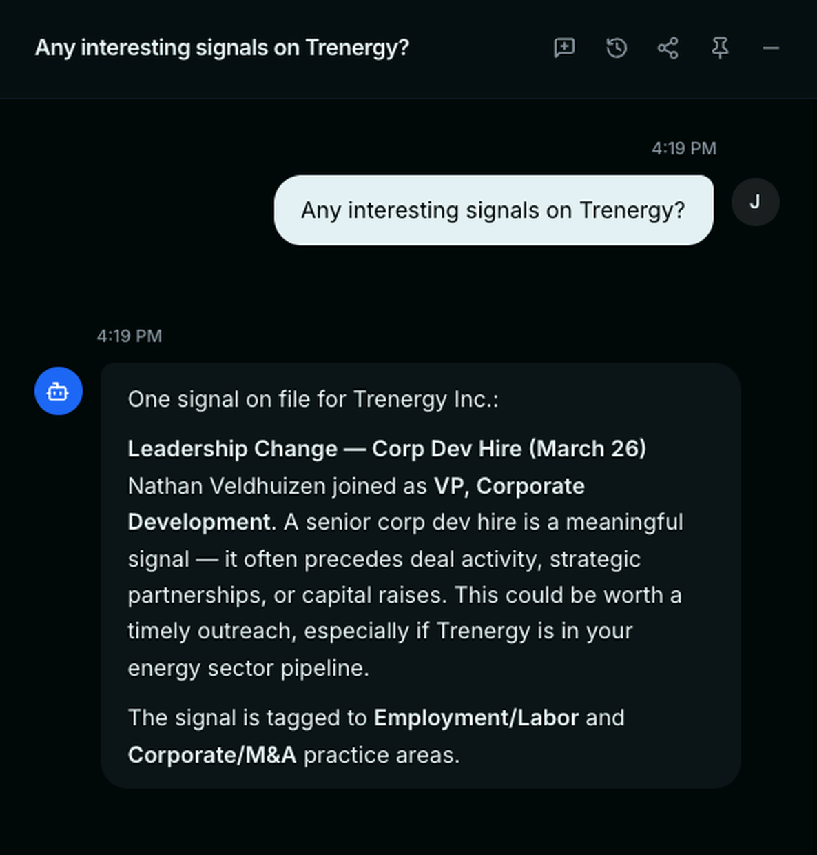 Ask Proactive Chat anything about your accounts, contacts, and signals.